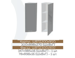 Глубина верхних шкафов: 300 мм